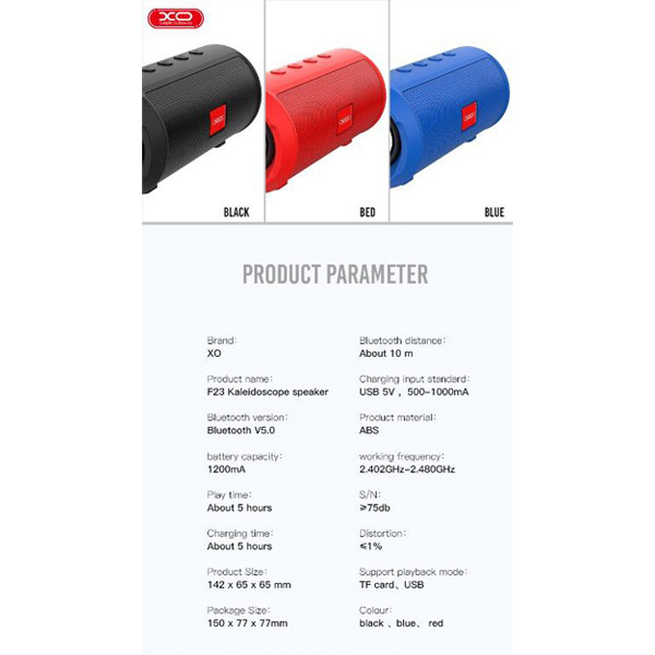 اگر قصد خرید اسپیکر بلوتوث را داشته باشید احتمالا اسم برند XO به چشمتان خورده است. اسپیکر بلوتوث XO F23 یکی از محصولات این شرکت است و میتواند به کمک اسپیکر 52 میلیمتری صدای مطلوب و شفافی را به گوش شما برساند. این اسپیکر قابل حمل بوده و در هر موقعیتی قابل استفاده است.