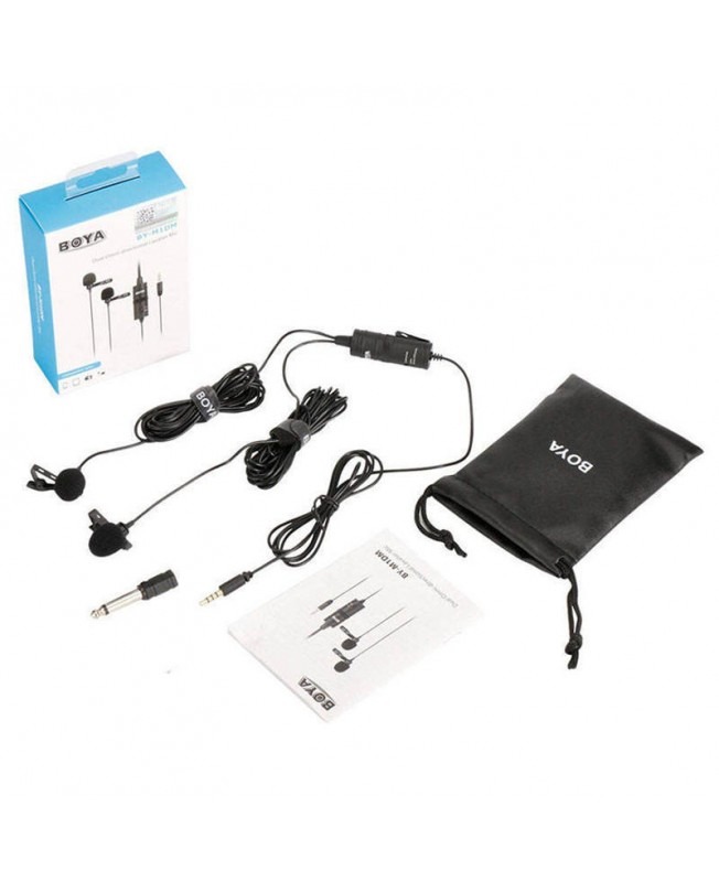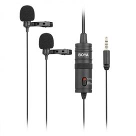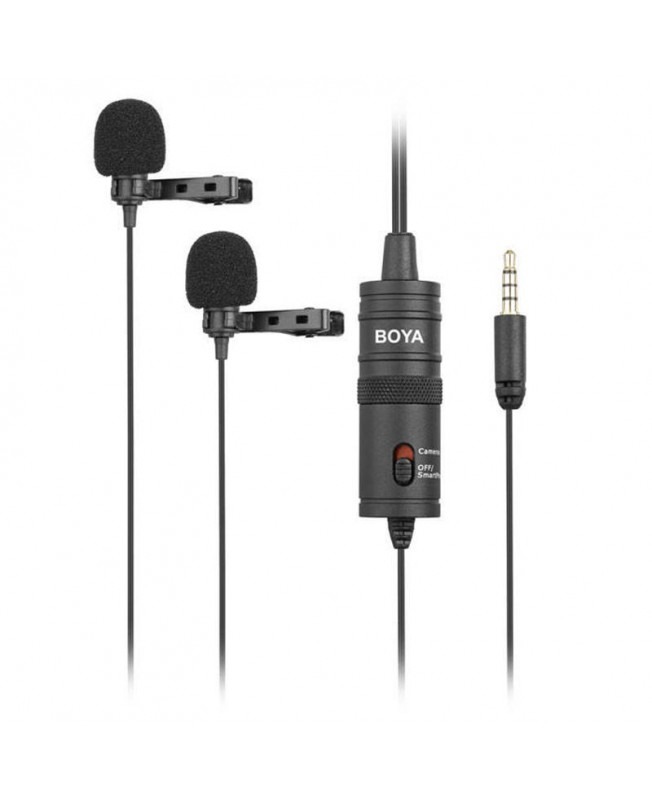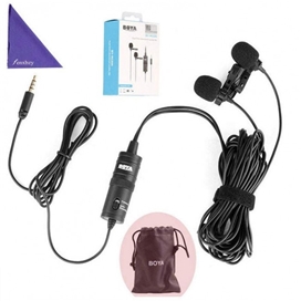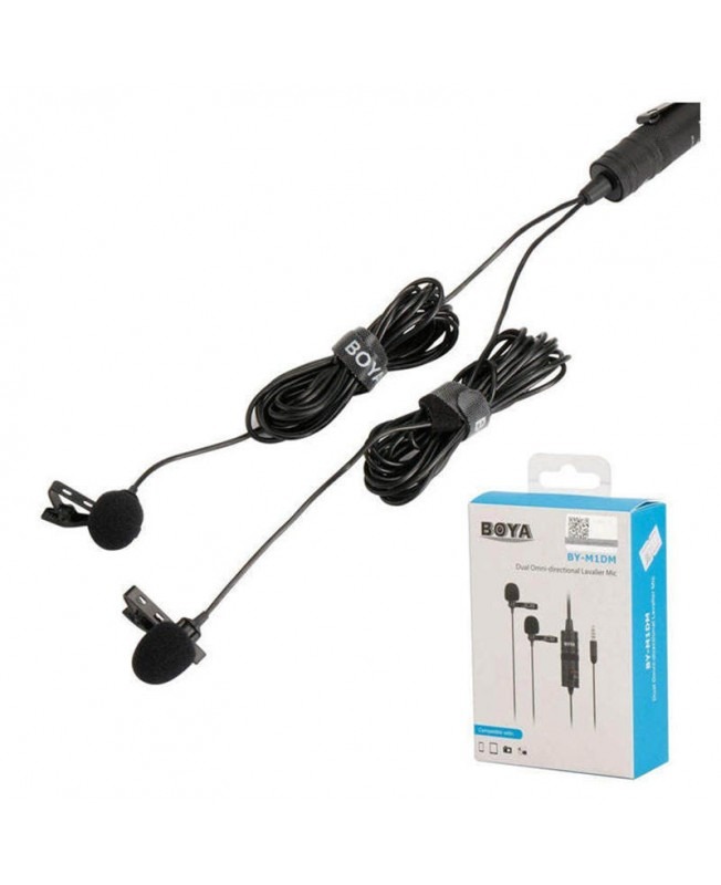 میکروفون یقه ای BY-M1DM برند Boya می تواند با بهترین کیفیت صدا را ضبط کند و به وسیله باتری LR44 تغذیه می شود. دهانه دیافراگم این میکروفن ۲٫۱ اینچ میباشد. برای جلوگیری از نویزهای ناشی از وزش باد، بخش فرستنده این میکروفون مجهز به محافظ است. تبدیل درگاه خروجی ۶ میلی متری، گیره، دفترچه راهنما و کیف حمل از دیگر لوازم جانبی همراه این میکروفون است.و به راحتی بر روی دوربین های DSLR، دوربین های ورزشی و گوشی های موبایل نصب شود ،همچنین وزن این میکروفن 68 گرم و در ابعاد 152*114*60 میلیمتر با فرکانس پاسخگوییHz~18kHz 65 و حساسیت 30 دسیبل و گستره دینامیکی 74 دسیبل به بالا می باشد. رابط این میکروفن جک 3.5 میلی متری صدا می باشد که دارای دو گیرنده است و با یک مبدل 3.5 میلیمتری به تمامی دستگاههای ضبط کننده وصل میشود. BY-M1DM از دو میکروفون همهجهته که با یک سیم 4 متری به هم وصل شدهاند تشکیل شده و برای مصاحبه، ارائه، ساخت پادکست، وب کست و توبید محتوا فوقالعاده میباشد.همچنین به همراه این میکروفن دو روکش اسفنجی، یک کیف حمل و دو گیره جداشونده فلزی نیز در بسته بندی وجود دارد.