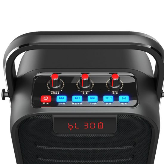 در قسمت بالایی این اسپیکر کلیدهایی وجود دارد که میتوانید از طریق آن اسپیکر را کنترل کنید. سه کلید به صورت دایرهای روی آن طراحی شده است که هر کدام کارایی مختلفی را دارند. یکی از آنها برای کم و زیاد کردن حجم صدا است، یکی دیگر برای تنظم میزان اکو (Echo) و دیگری برای تنظیم صدای میکروفون است. غیر از این موارد، کلیدهای دیگری نیز وجود دارند که برای کنترل موسیقی و زدن آهنگ به ترک قبلی و بعدی است. همچنین باید به این مورد نیز اشاره کرد که یک کلید برای تغییر حالت بین موسیقی و FM است که با حرف M نشان داده شده است.