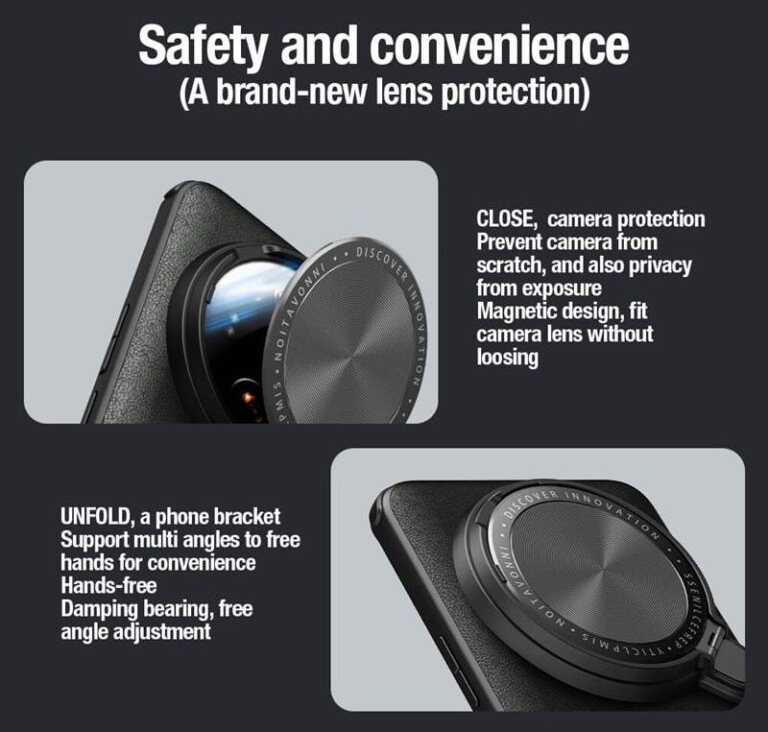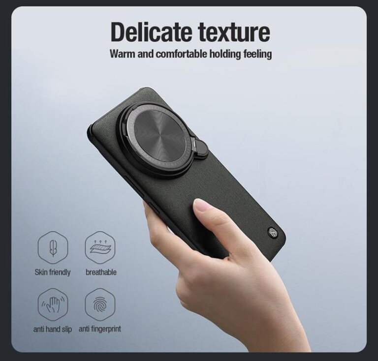 کاور چرمی Camshield Prop Leather که نوعی زیبایی بصری ساده و مجلل را ارائه می دهد، قطعا یک طراحی کلاسیک است. این پوسته ترکیبی از سخت و نرم را با اتصال لبه‌های TPU و صفحه پشتی رایانه شخصی برای جلوگیری از افتادن و خراشیدگی به کار می‌گیرد، و لایه‌ای از چرم بافت‌دار که صفحه پشتی رایانه شخصی را می‌پوشاند دارای یک لمس ظریف و ابریشمی، ضد اثر انگشت و جلوگیری از آلودگی روغن است. پوشش کشویی لنز ثبت شده نه تنها از خراشیدن لنز جلوگیری می کند، بلکه از حریم خصوصی تلفن شما در برابر افشای آن محافظت می کند. همچنین نوارهای ضد لغزش با شکستگی براق براق لیزری در دو طرف اضافه شده است تا عملکرد ضد سقوط را ارتقا دهد.متریال ترکیبی از سخت و نرم حاشیه‌های نرم TPU و قاب پشتی سخت و با ترکیب چرم ظریف، تلفن همراه شمارا در برابر ضربدیدگی و خط و خش محافظت می‌کند. همچنین در قسمت کشویی محافظ لنز دوربین از آلیاژ خیره کننده‌ای استفاده شده است. پوشش لنز از آلیاژ آلومینیوم سخت، فناوری بافت CD که روی سطح آن استفاده شده است، و دارای بافت براق بوده و نور را منعکس می‌کند.در طراحی و ساخت کیف محافظ چرمی Camshield Prop Leather نیلکین از تلفن همراه واقعی استفاده شده است و متناسب با تلفن همراه شماست، همچنین ضخامت مناسب روی محافظت از تلفن و شارژ بی‌سیم تاثیری نمی‌گذارد.