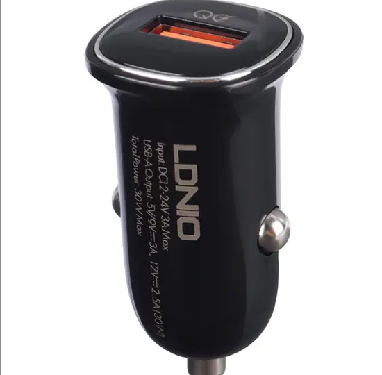 شارژر فندکی 30 وات فست شارژ همراه با کابل الدینیو LDNIO Fast Charging Car Charger C105
