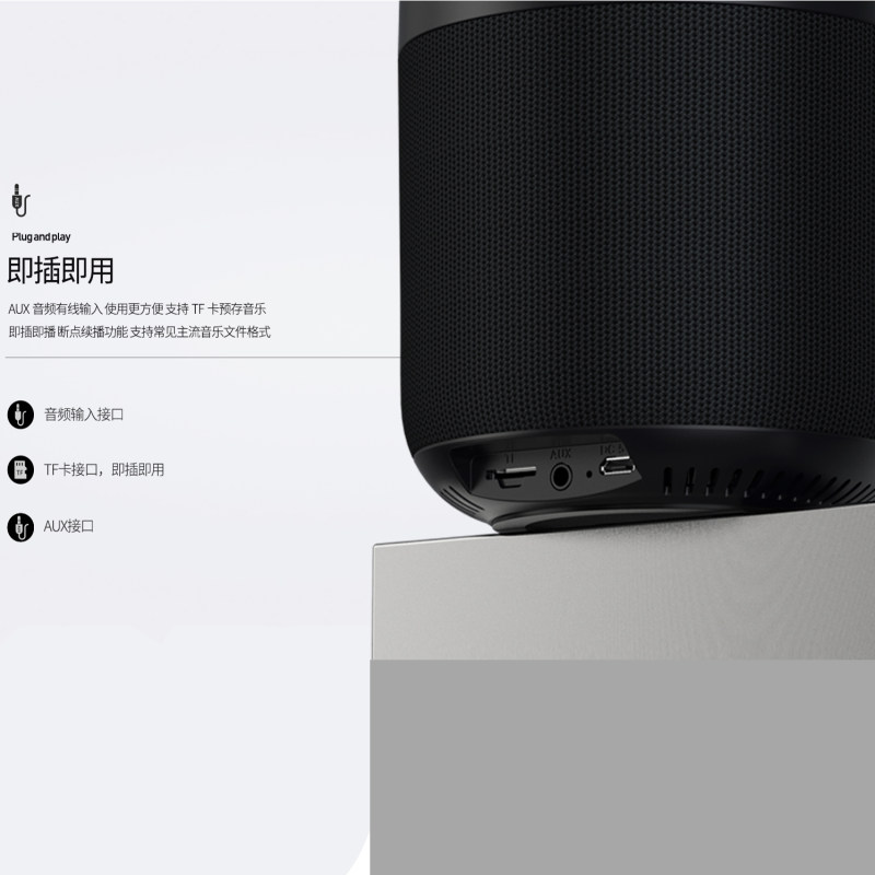 علاوه بر اتصال بلوتوث این دستگاه قادر به پشتیبانی از اتصال سیمی نیز هست. درگاه AUX جک 3,5 میلی متری به کار رفته روی بدنه اسپیکر ریمکس این امکان را فراهم کرده تا بتوانید دستگاهها و یا میکروفونهای سیمی را نیز به آن وصل کنید.