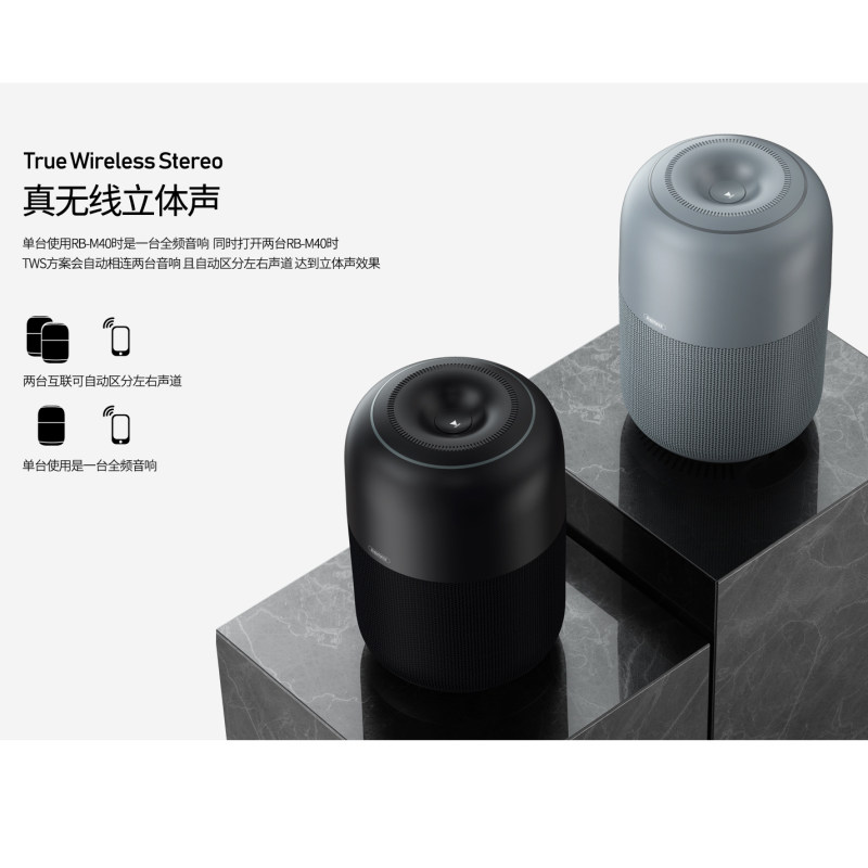 اسپیکر بلوتوثی ریمکس RB-M40 دارای یک کانال صدا استریو میباشد که 10 وات توان دارد و قطر آن 64 میلی متر است