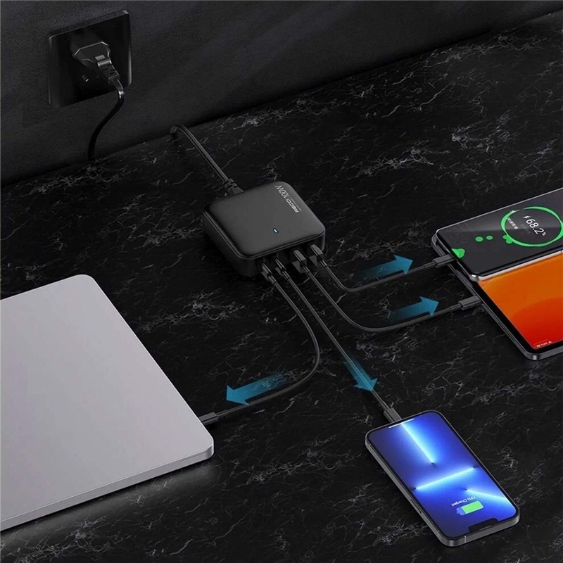 درگاه های تعبیه شده شامل دو پورت USB-A و دو Type-C با پشتیبانی از استاندارد شارژ سریع 100W PD است. همه این پورت ها می توانند به طور همزمان برای فرآیند شارژ سریع در ترکیب با یک دیگر استفاده شوند.