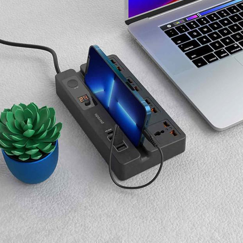 چند راهی و شارژر نمایشگردارMulti-Function Socket With Phone Stand and Digital Timer پرودو Porodo مدل PD-FWCH007