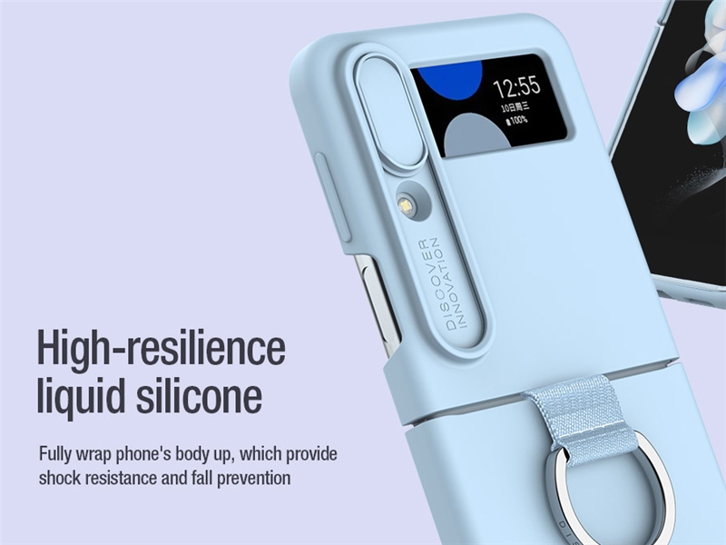 گارد Z Flip4 Nillkin CamShield Silky به صورتی طراحی شده که میتواند مانند گوشی تا 180 درجه تا شود. یک حلقه در قسمت بین این قاب وجود دارد که هنگام کار با گوشی میتوانید از آن استفاده کنید.