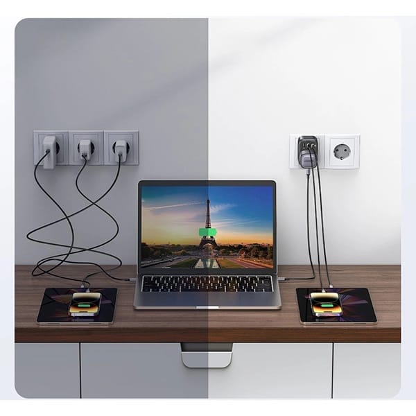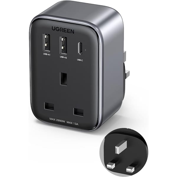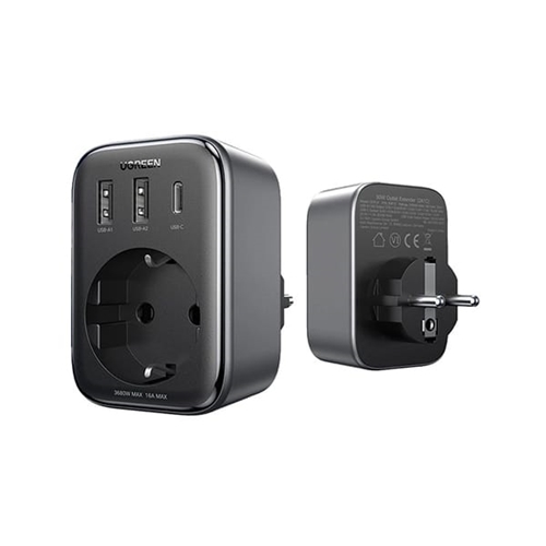 شارژر دیواری یوگرین با دو پورت USB-A و یک پورت USB-C و یک درگاه سه شاخ می‌تواند دستگاه‌های شما را با سرعت بالا شارژ کند. پورت USB-C از توان خروجی ۳۰ وات برای شارژ سریع PD پشتیبانی می‌کند، در حالی که دو پورت USB-A می‌توانند دستگاه‌های شما را با توان ۱۸وات شارژ کنند.