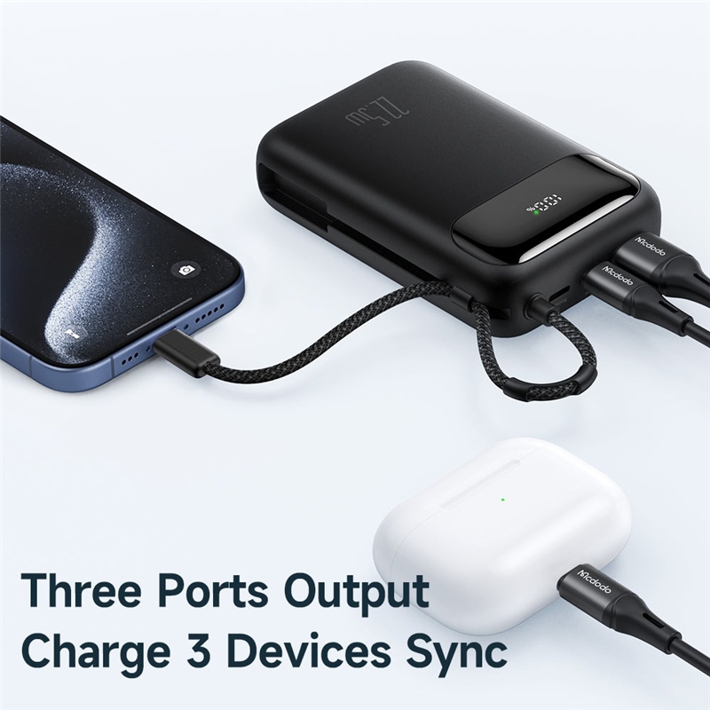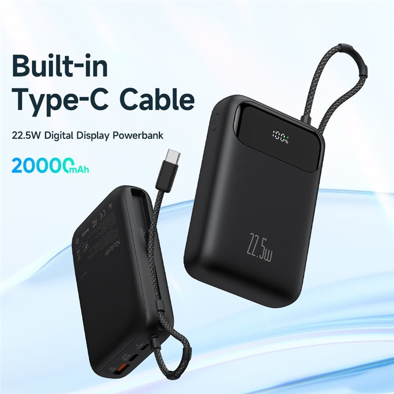 پاوربانک مک دودو Mcdodo ch-372 22.5W PD+QC 20000mAh با کابل USB-C داخلی و نمایشگر دیجیتال را معرفی می کنیم. این پاوربانک در هنگام شارژ دستگاه های شما در حال حرکت، یک نیروگاه است. با طراحی شیک و جمع و جور خود، به راحتی در جیب یا کیف شما قرار می گیرد و حمل آن را راحت می کند.