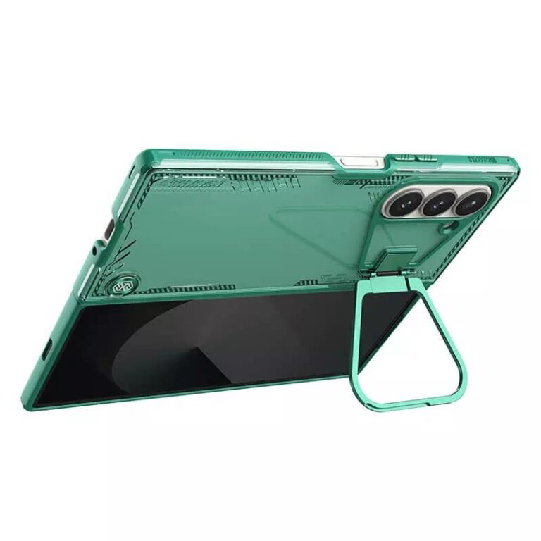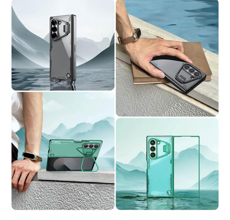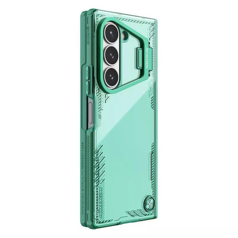 یکی از شرکت های معتبر در زمینه تولید لوازم جانبی گوشی، کمپانی نیلکین می باشد. این شرکت تقریبا همه لوازم جانبی گوشی ها اعم از کیف، قاب، محافظ صفحه و … را طراحی و تولید می کند و به دلیل کیفیت بالای محصولاتی که عرضه کرده به عنوان یکی از برندهای معتبر در این زمینه شناخته شده است. از میان انواع مختلف قاب هایی که تولید کرده می توان به قاب نیلکین مدل Iceblade Fold Camera protective اشاره کرد که از جنس پلی کربنات (PC) و تی پی یو بوده و از موادی سازگار با محیط زیست و غیر سمی تهیه شده است. قاب نیلکین Iceblade گوشی Z Fold 6 با استفاده از فناوری تزریق پلاستیک ساخته شده و از کیفیت بسیار بالایی برخوردار است. این قاب با طراحی منحصر به فردی که دارد در دو طرح شفاف سبز و مشکی تولید و روانه بازار شده است. این قاب ها به نحوی رنگ ریزی شده که در عین حفظ شفافیت خود هاله ای از رنگ سبز و مشکی را نیز دارند که این زیبایی آنها را دو چندان می کند، چون کاربر می تواند با انتخاب رنگ مورد نظر خود، با استفاده از شفافیت قاب نیلکین در عین حفظ زیبایی گوشی، همچنین رنگ آن را تغییر دهد و از کار با آن لذت ببرد. قاب نیلکین گوشی Z Fold 6 از پلاستیکی غیر سمی و سازگار با محیط زیست ساخته شده و در این زمینه استاندارد های لازم را نیز دارد. سطح پوشش iceblade شامل قسمت پشت گوشی، لبه ها و دوربین آن می شود که از این نظر هم بسیار عالی کار کرده و با پوشش کامل دستگاه، نسبت ب محافظت آن در برابر ضربه و سقوط عملکرد قابل قبولی دارد. این قاب دارای جنسی از TPU (نسبتا نرم) و PC (نسبتا خشک) بوده و به سبب ظرافتی که در آن به کار رفته حجم زیادی ندارد و بنابراین به موقع استفاده از آن اندازه گوشی را زیاد تغییر نمی دهد. قاب نیلکین iceblade با وجود برجستگی هایی که در لبه های آن به کار رفته ضد لغزش بوده و کاربر می تواند با اطمینان خاطر از آن استفاده نماید. بخش های مربوط به سنسور و درگاه های گوشی با دقت بسیار بالایی برش داده شده و همین امر سبب شده که دسترسی کاربر به این بخش ها به راحتی صورت گیری. کارکرد فوق العاده دیگر این کاور این است که می توان با استفاده از درب محافظ دوربین که بر روی آن وجود دارد گوشی را در دو حالت استند قرار داد و از آن استفاده نمود که این ویژگی به ویژه به هنگام تماشای ویدئو در گوشی بسیار کاربردی است.