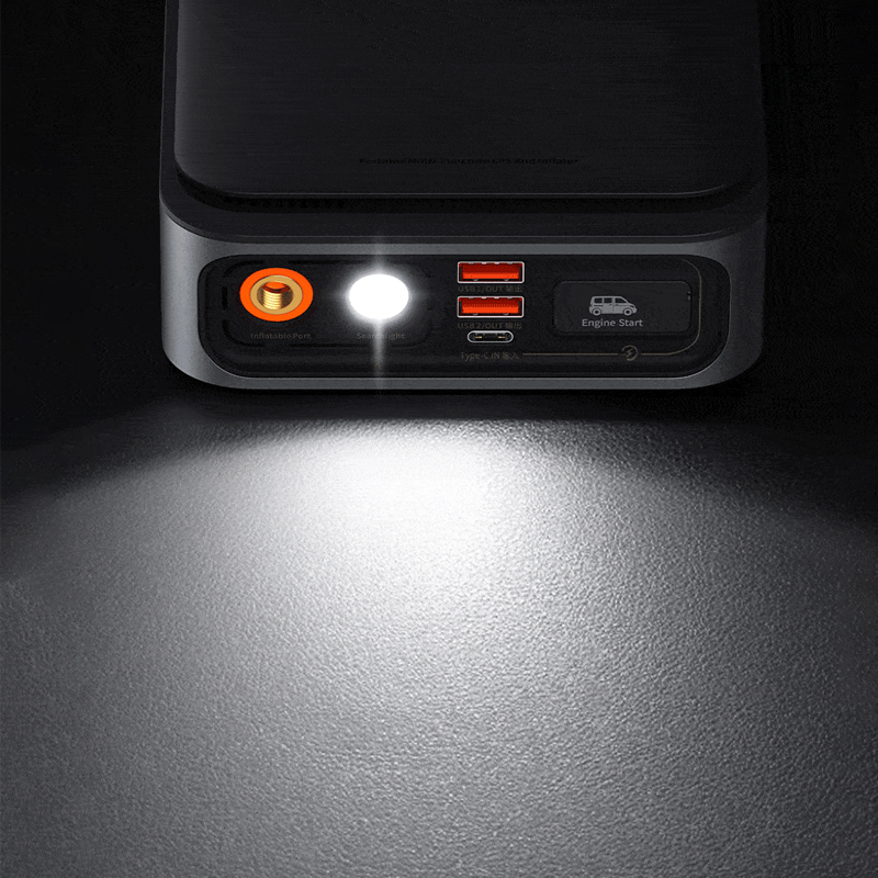 پمپ باد: این دستگاه می‌تواند با یک بار شارژ کامل، تا 4 چرخ خودرو را باد کند. همچنین قابلیت باد کردن وسایل دیگر را دارد و با تنظیم فشار مناسب به طور خودکار عملیات باد کردن را متوقف می‌کند. فشار تولیدی آن بین 5 تا 150 PSI بوده و در صورت تجاوز از 150 PSI، LED هشداردهنده روشن شده و پمپاژ متوقف می‌شود.