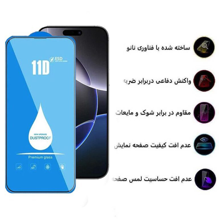 یکی از بدترین اتفاقاتی که می‌تواند برای گوشی رخ دهد آسیب دیدن نمایشگر آن است. اگر به دنبال یک گلس با کیفیت بالا می‌گردید خرید محافظ صفحه نمایش 11D اپیکوی مدل Blue ESD مدل تمام صفحه را به شما پیشنهاد می‌کنیم، زیرا هم چسبندگی و هم مقاومت بالایی به ضربه‌ دارد. در صورت آسیب به نمایشگر گوشی، علاوه بر هزینه‌ی بالایی که باید برای تعویض LCD پرداخت کنید، ممکن است کیفیت آن از نظر لمسی و ظاهری هیچوقت مثل روز اول نشود. به همین دلیل هم هست که هنگام خرید لوازم جانبی گوشی اولین گزینه‌ای که انتخاب می‌کنیم محافظ صفحه است.این گلس از شیشه‌ی حرارت دیده ساخته شده است.این نوع شیشه مقاومت خیلی بالاتری نسبت به گلس معمولی دارد و شکنندگی پایین‌تری هم خواهد داشت.وقتی هم بشکند به قطعات تیز و برنده تبدیل نمی‌شود، بنابراین امنیت بهتری هم دارد.این نوع محافظ صفحه نمایش دارای پوشش چربی گریز است.این پوشش مخصوص از ماندن لک چربی، اثر انگشت و … روی سطح جلوگیری می‌کند.در نتیجه سطح گلس همواره تمیز و شفاف باقی می‌ماند.ضخامت این گلس خیلی پایین و حدود 0.33 میلی‌متر است. این ضخامت کم سبب می‌شود حساسیت لمسی گوشی با هیچ مشکلی مواجه نشود و تاخیری در پاسخ دهی لمسی حس نکنید.این گلس چسبندگی بالایی دارد. وقتی آن را روی گوشی نصب می‌کنید خیلی سریع و با کیفیت بالا می‌چسبد و نمی‌گذارد سطح دچار حباب بشود. علاوه بر آن لبه‌ها هم به مرور زمان بالا نمی‌آیند،مشکلی که شاید در برچسب‌ها یا گلس‌های بی‌کیفیت مشاهده شود.ضخامت کم این گلس باعث شده تا کوچکترین تاثیری روی کیفیت و وضوح صفحه نمایش نداشته باشد و می‌توانید با خیال راحت از آن استفاده کنید.این گلس ماندگاری بسیار بالایی دارد. می‌توانید تا مدت‌های طولانی بدون مشکل از آن استفاده کنید و نگران شکستن و یا آسیب دیدن آن در اثر ضربه یا فشار نخواهید بود.محافظ صفحه نمایش 11D اپیکوی مدل Blue ESD شفافیت کاملی دارد که اجازه نمی‌دهد کیفیت نمایشگر پایین بیاید.گلس رنگ‌ها را تغییر نمی‌دهد و هیچ تفاوتی را حس نمی‌کنید.پوشش سراسری دارد. هم لبه‌ها و هم قسمت‌های مرکز صفحه و گوشه‌ها به طور کامل پوشش داده می‌شوند و هیچ مشکلی از نظر کار کردن با گوشی نخواهید داشت.اگر این گلس را درست و دقیق نصب کنید هیچ حبابی زیر و در اطراف آن تشکیل نمی‌شود.نصب این گلس بسیار آسان و راحت میباشد.