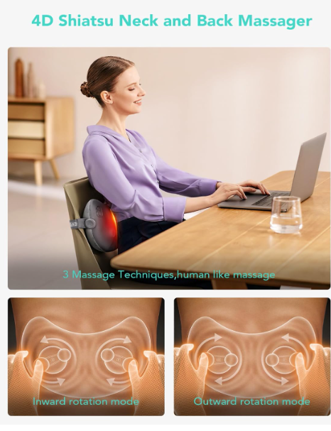 گرمای ملایمی که از بالشتک ماساژور ساطع می شود آرامشی دلپذیر با دمای 38 تا 42 درجه سانتی گراد (100.4 تا 107.6 فارنهایت) ایجاد می کند. برای آرامش عضلات دردناک و بهبود گردش خون عالی است. دارای خاموشی خودکار پس از 15 دقیقه استفاده مداوم برای جلوگیری از استفاده بیش از حد یا داغ شدن بیش از حد است.