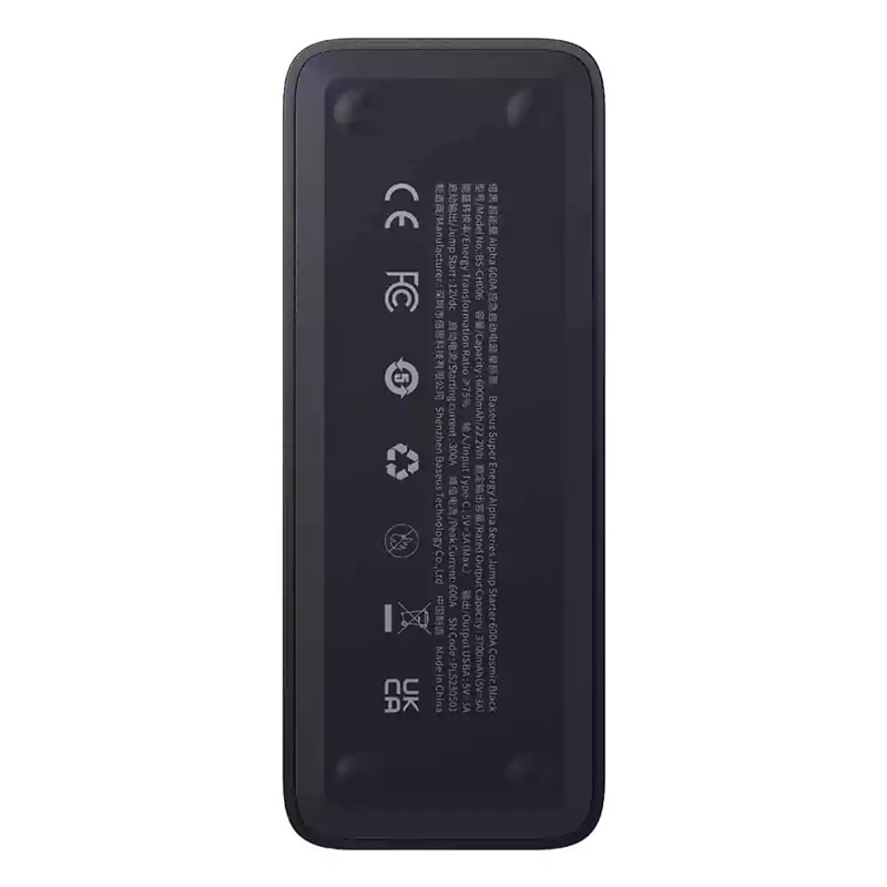 Baseus Super Energy Alpha CH006 یک نوع پاوربانک با ظرفیت 6000 میلی آمپر است که از نظر مدارهای الکتریکی و از نظر کابل ها، برای جریان های بسیار بالای لحظه استارت خودرو طراحی و تولید شده تا بتواند در مواقع اضطراری که باتری ماشین ضعیف شده یا اصطلاحا خوابیده، موتور ماشین را استارت بزند. این جامپ استارتر می تواند جریان لحظه ای 300 تا حداکثر 600 آمپر را تولید کند. شما می توانید جامپ استارتر بیسوس را برای خودروهای بنزینی با حجم موتور 3.0 لیتری یا خودروهای گازوئیلی با حجم موتور 2.2 لیتر استفاده کنید. با توجه به کاربری جامپ استارتر داخل پک محصول کابل اتصال به باتری قرار دارد و گیره های اتصال به خودروی ماشین دارای حالت هوشمند محافظت در برابر جریان معکوس است و به صورت لحظه ای ولتاژ را ارزیابی می کند.