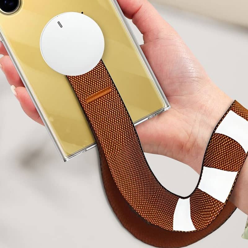 یکی دیگر از محصولات جانبی کاور شفاف سامسونگ برای Galaxy S24 Ultra که در جعبه قرار گرفته، بند آویز است. این بند قهوه ای رنگ است و علامت S انگلیسی که لوگوی برند سامسونگ محسوب می شود، روی آن طراحی شده است. بند Samsung Clear Gadget Case Galaxy S24 Ultra EF-XS928 دور مچ دست قرار می گیرد تا مانع از افتادن گوشی شود.