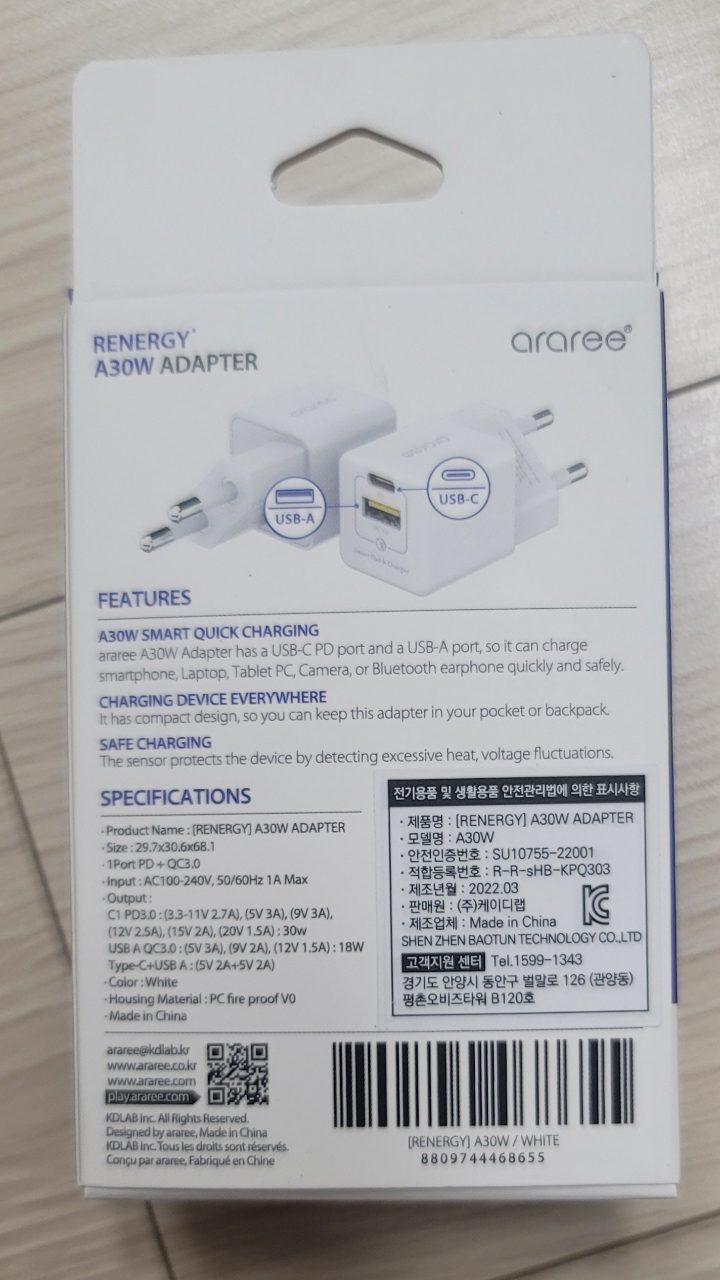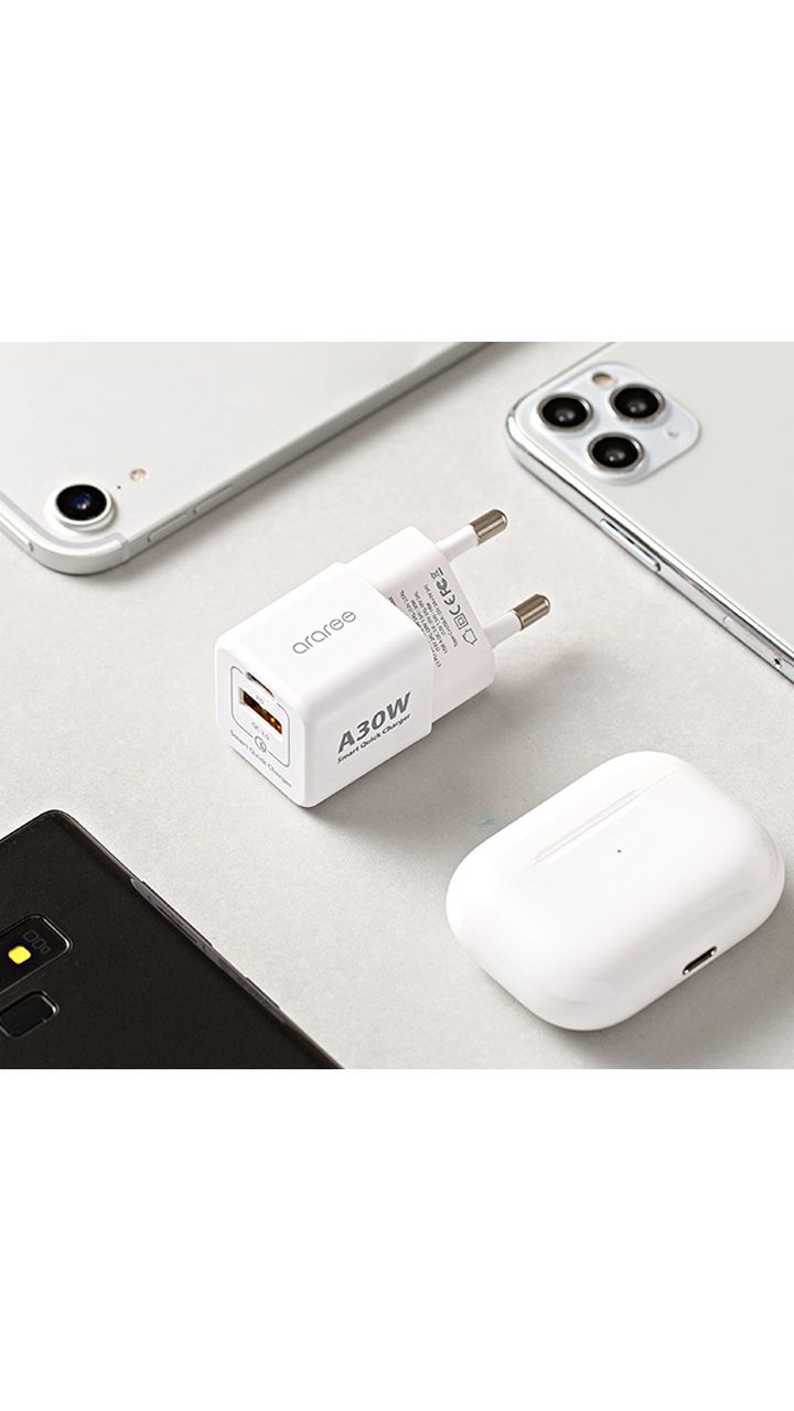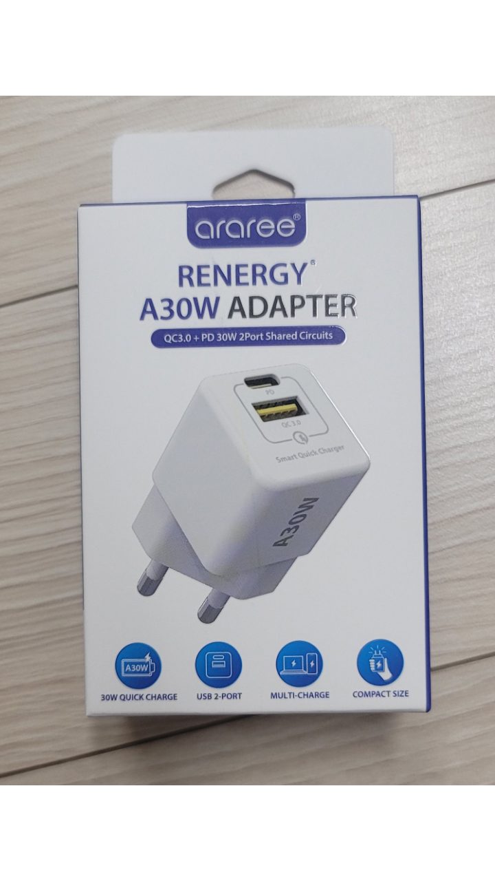 آداپتور 30 وات 2 پورت آراری مدل Renergy A30W دارای بدنه ای بسیار با کیفیت و محکم می ‌باشد که در برابر ضربه و حرارت بسیار مقاوم است، یکی از مزیت های استفاده از این آداپتور وجود 2 درگاه کابل USB-C با قابلیت شارژ، با توان ۳۰ و 18 وات می باشد لازم به ذکر می باشد که این محصول در بسته بندی خود فاقد کابل می باشد.