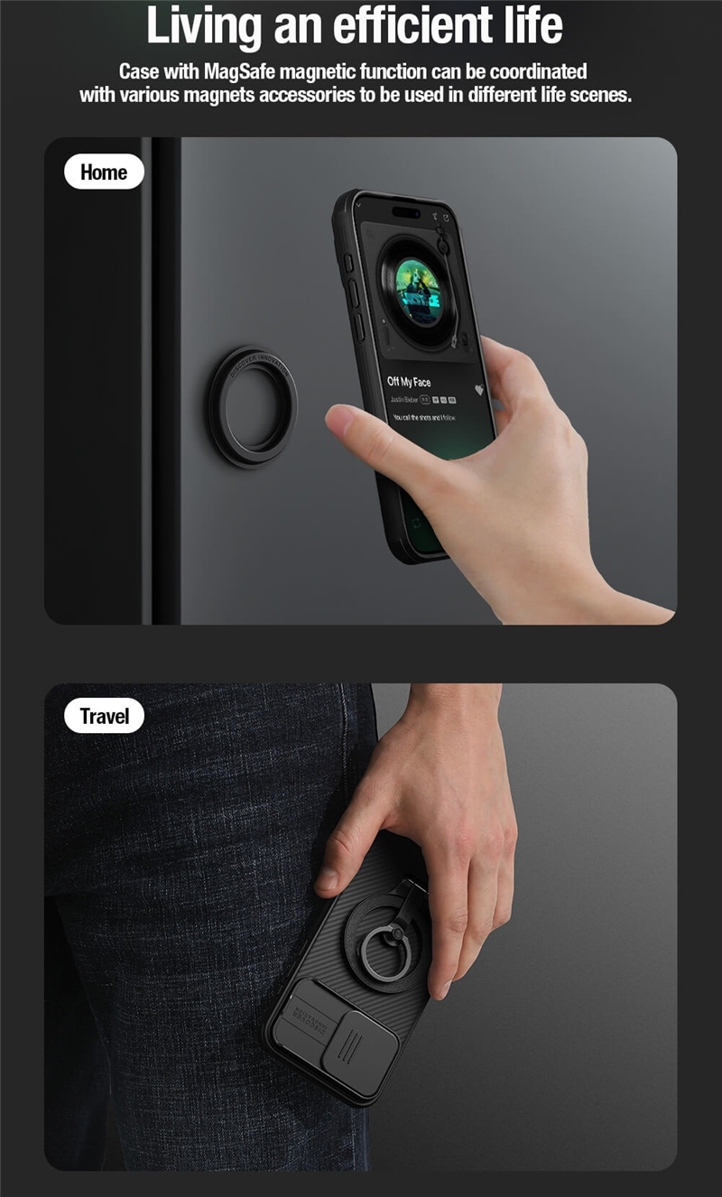 در ادامه باید اشاره داشت که از مزیت های دیگرقاب محافظ دوربین نیلکین iPhone 16 Pro Max، بهره مندی از قابلیت مگنتی است. به جهت این ویژگی شما می توانید به سادگی از شارژرهای وایرلس استفاده کرده و مانعی از این بابت برای شما وجود نداشته باشد. در این رابطه باید گفت که شما می توانید بدون نیاز به در آوردن گوشی از قاب، شارژر وایرلس را به پشت گوشی (روی قاب) زده و از شارژ شدن آن مطمئن شوید.