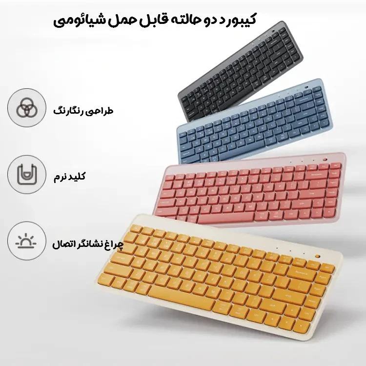 کیبورد دو حالته شیائومی یک صفحه کلید بی سیم جمع و جور و چند منظوره است که برای استفاده با لپ تاپ، تبلت و سایر دستگاه ها ایده آل است. این محصول از طریق بلوتوث یا دانگل 2.4 گیگاهرتز به صورت بی سیم به دستگاه شما متصل می شود و دارای چندین ویژگی مفید مانند پایه نگهدارنده تقسیم شده، دکمه های میکرو خمیده و نشانگر کانال مستقل است. این کیبورد دو حالته دارای طراحی جمع و جور و باریکی است که به راحتی قابل حمل است. این صفحه کلید دارای 85 کلید با چیدمان استاندارد طراحی شده است که شامل تمام کلیدهای ضروری برای تایپ و کاربری کارآمد می شود. پایه نگهدارنده تقسیم شده به شما امکان می دهد تا صفحه کلید را در زاویه ای راحت تر قرار دهید و از خستگی دست در هنگام استفاده طولانی مدت جلوگیری کنید. دکمه های میکرو خمیده نیز برای عملکرد کم صدا طراحی شده اند.این صحفه کلید از طریق بلوتوث یا دانگل 2.4 گیگاهرتز به صورت بی سیم به دستگاه شما متصل می شود که به شما امکان می دهد تا از صفحه کلید با طیف گسترده ای از دستگاه ها از جمله لپ تاپ، تبلت، دسکتاپ و حتی تلفن های هوشمند استفاده کنید. صفحه کلید همچنین می تواند به طور همزمان به چندین دستگاه متصل شود، بنابراین می توانید به راحتی بین آنها جابجا شوید.کیبورد شیائومی دارای چندین ویژگی دیگر است که آن را به یک انتخاب ایده آل برای کاربران با نیازهای مختلف تبدیل می کند. این صفحه کلید از دکمه های لاستیکی رسانا استفاده می کند که تجربه تایپ راحت و بصری را ارائه می دهد. همچنین دارای یک نشانگر کانال مستقل است که وضعیت اتصال را در یک نگاه نشان می دهد.