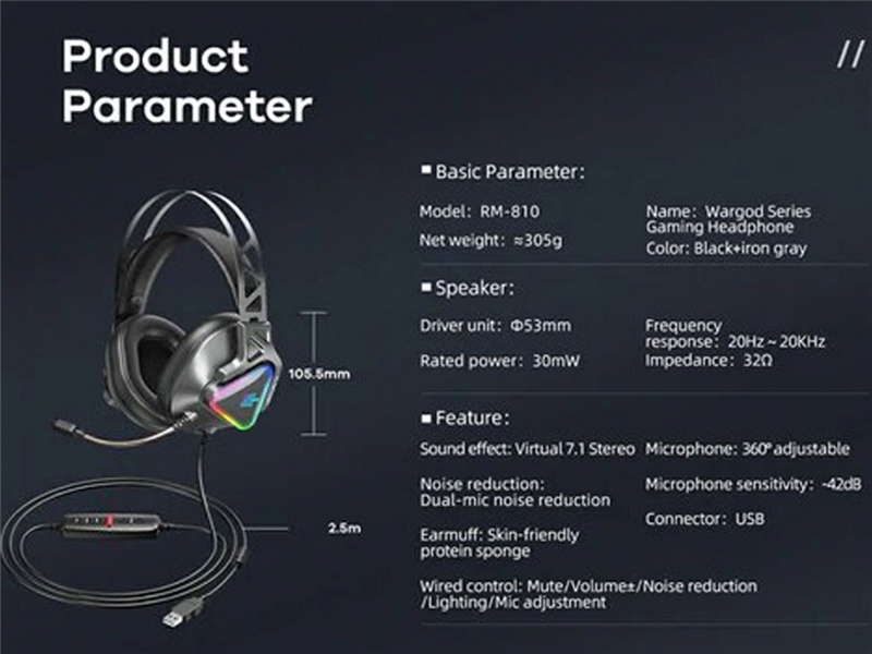 هدست با سیم Remax RM-810 WarGod Usb RGB Gaming Headphone