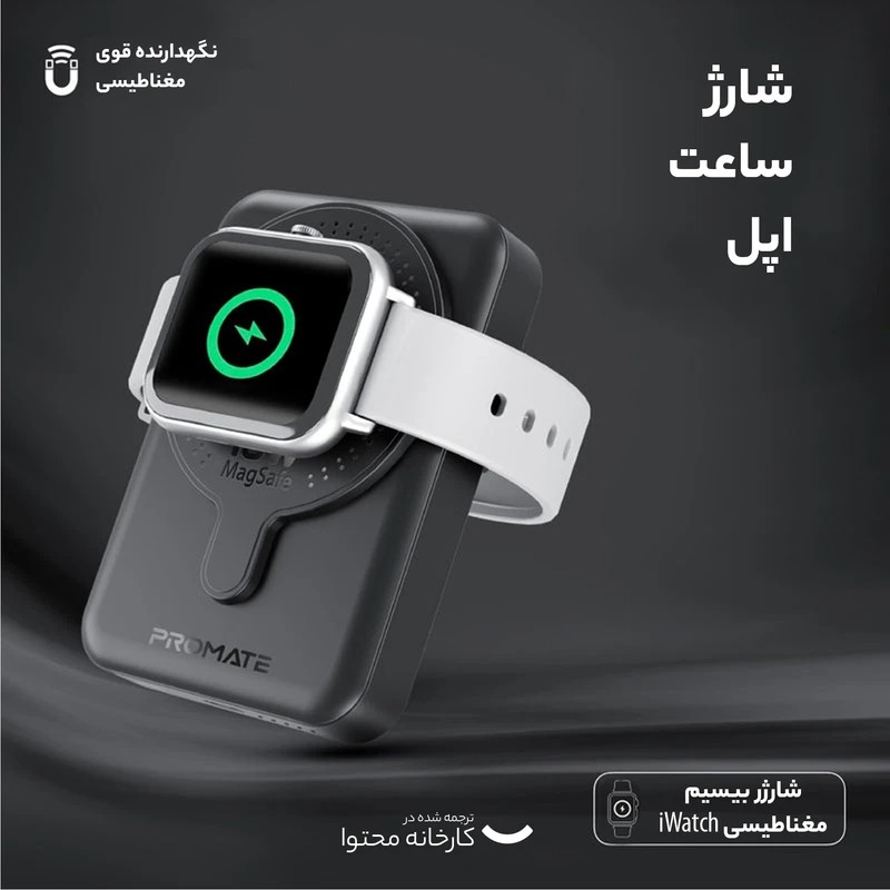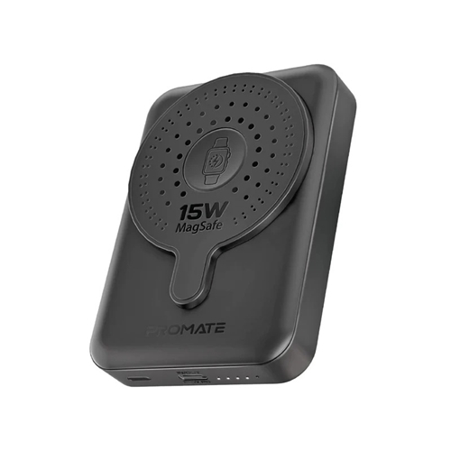 شارژر بی سیم پرومیت مدل POWERMAG-DUO.BLACK با باتری داخلی 10000 میلی آمپر ساعت با PowerMag-Duo شارژ بی‌سیم آیفون و اپل واچ خود را در بالاترین سرعت انجام دهید. این دستگاه دارای یک ماژول شارژ بی‌سیم 15 وات با پشتیبانی از فناوری MagSafe است که به طور کامل با آیفون‌های شما سازگاری دارد و برای شارژ سریع و ایمن مناسب است. در این محصول، صفحه شارژ مغناطیسی اپل واچ قرار داده شده که با اپل واچ شما به طور کامل هماهنگ می‌شود و دستگاه‌های شما را در حالت حرکت با توان ایده‌آل 3 وات شارژ می‌کند. پورت‌های USB-C با توان خروجی 20 وات و پشتیبانی از فناوری Power Delivery به شما کمک می‌کنند، دستگاه‌های USB-C خود را تا 4 برابر سریع‌تر شارژ کنید. طراحی قابل حمل و سبک وزن PowerMag-Duo به شما این امکان را می‌دهد که دستگاه خود را در هر مکانی شارژ کنید. مشخصات محصول: - طراحی سبک و قابل حمل برای قرارگیری راحت در جیب کاربران/ ابعاد جیبی/ 50 درصد کوچکتر از پاوربانک‌هایی به همین ظرفیت/ دارای استند تاشو متصل به محصول - باتری داخلی لیتیوم پولیمر به ظرفیت 10000 میلی‌آمپرساعت - ارائه توان خروجی 20 وات از پورت USB-C با فناوری Power Delivery - امکان شارژ بی‌سیم آیفون، اپل واچ و شارژ با خروجی USB-C - شارژ بی‌سیم 15 وات با فناوری MagSafe برای شارژ سریع و اتصال ایمن - پشتیبانی پد شارژ بی‌سیم از شارژ اپل واچ با توان خروجی 3 وات - دارای سیستم‌ اختصاصی ایمنی برای جلوگیری از افزایش دما، جریان اضافی و محافظت در برابر اتصال کوتاه