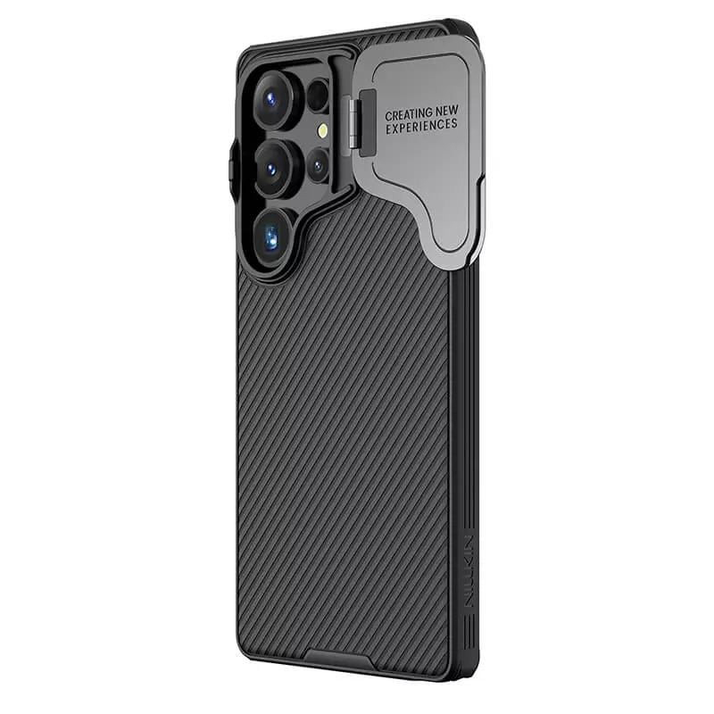 نیلکین شرکتی است که همواره در تولید قاب های مختلف خصوصا برای پرچمداران شرکت سامسونگ، خلاقیت و نوآوری بسیاری دارد. CamShield Prop جدید ترین محصول نیلکین از سری Camshiled است که در نیمه اول 2024 میلادی وارد مارکت جهانی شد؛ بسیاری از کاربران با توجه به ارزش بالای گوشی موبایل S25 Ultra نگران در معرض خط و خش قرار گرفتن دوربین ها و بدنه این گوشی هستند. نیلکین با تولید قاب CamShield Prop توانسته علاوه بر امر محافظت از گوشی و زیبایی، دوربین گوشی S25 Ultra را نیز بخوبی پوشش دهد.کاور نیلکین مدل CamShield Prop از جنس PC سخت بوده و بخش های اطراف آن دارای خط های موربی می باشد که برای جلوگیری از لغزیدن گوشی در دستان شما طراحی شده است. همچنین قسمت پشتی قاب نیز از همین طرح پیروی می کند. اما مزیت اصلی این قاب محافظت کامل از دوربین گوشی است. در قسمت پشت قاب CamShield Prop یک بخش متحرک وجود دارد که مانند یک درپوش لولایی روی دوربین گوشی را می پوشاند. بسیار محکم و به شکل فلزی با کیفیت با طرح زیبای نیلکین در قسمت داخلی طراحی و ساخته شده است. در صورت تمایل می توانید این درپوش را کنار زده و از دوربین خود استفاده کنید. از این درپوش می توان به عنوان استند استفاده کرد و گوشی را روی سطح قرار داد. از مهمترین مزیت های اصلی این قاب می توان به ساختار دو تیکه ی آن اشاره کرد که این گارد از یک بامپر مقاوم و یک پنل پشتی تولید شده است، بامپر 4 گوشه به خوبی با لبه های مقاوم از جنس TPU ضربات را مهار کرده و از گوشی در برابر سقوط و ضربه دیدن محافظت می کند. دور تا دور قاب کمشیلد پروپ از TPU نرم ساخته شده است که کمی به آن حالت ارتجاعی می دهد و این امر موجب دفع بهتر ضربه خواهد شد. قاب Nillkin CamShield Prop تمام قسمت پشت و لبه های اطراف را به خوبی پوشش می دهد و قسمت پورت و اسپیکرها را بخوبی برش داده است. همچنین روی کلیدهای این قاب محافظی از جنس خود قاب بصورت برجسته قرار داده شده که به شما در دسترسی راحت تر و محافظت بیشتر از گوشیتان کمک می کند.در ضمن پنل پشتی این قاب ضد اثر انگشت نیز می باشد. زیبایی بی چون و چرا ، مقاومت بالا ،محافظت از دوربین ها و عدم افزایش محسوس به گوشی پس از نصب ، این قاب را جزو بهترین انتخاب ها برای دارندگان گوشی Galaxy S25 Ultra تبدیل کرده و واقعا انتخابی برازنده ی این گوشی می باشد.